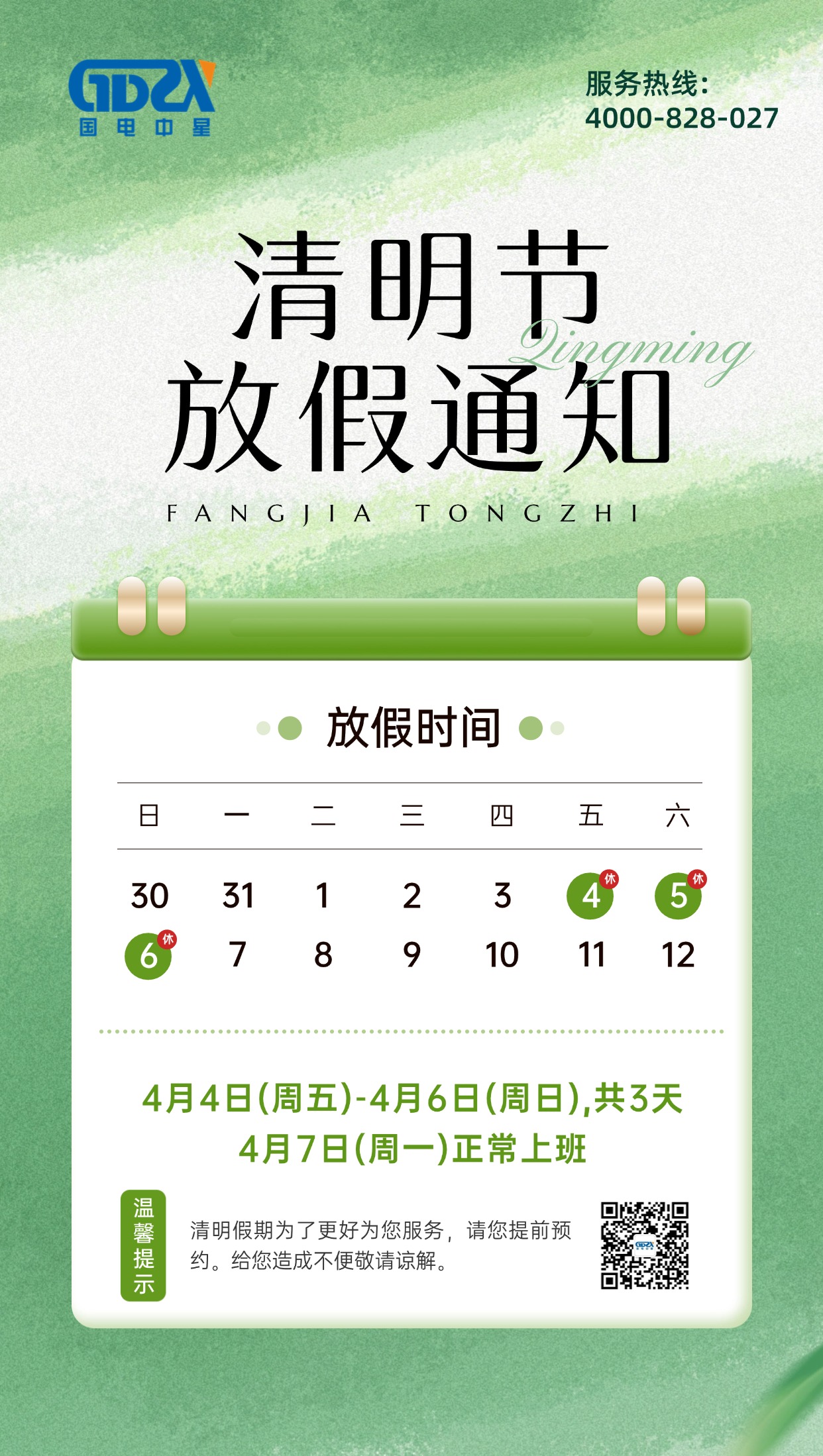 国电中星2025年清明节放假通知清明节是中华民族的重要传统节日,历史上一度成为仅次于春节的盛大节日。在传统社会中,清明节的节期持续时间较长(五六天到十几天,各地各时代不等),一方面是扫墓祭奠、怀念离世亲人的节日,一方面是踏青嬉游、亲近大自然的节日。直到今天,清明节仍然是中华民族包括海外华人的重要节日之一 。亲爱的国电中星小伙伴:清明将至,万物春和。根据国家节假日安排,结合单位工作实际,现将2025年清明节放假安排通知如下:一、放假时间1、...