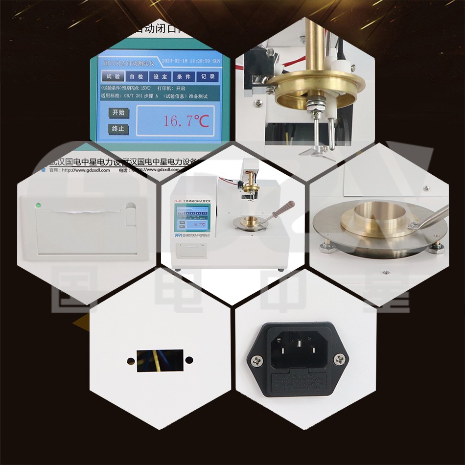仪器按照ASTM D93、GB/T261-2008方法规定的升温曲线加热,温度接近闪点值时自动点火,当出现闪点时仪器自动锁定显示打印结果,同时自动对加热器进行冷却。