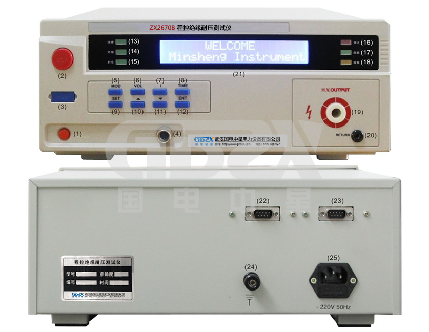 ZX2670B绝缘耐压测试仪是集电气强度、绝缘电阻测试为一体的程控绝缘耐压测试仪,电压按设定时间梯度上升,耐压和绝缘电阻可连续测试,具有4组记忆模式,带有RS232和PLC接口。仪器所提供的测试线路符合GB4706.1家用或类似用途电器的安全性能检测原理通用要求,GB4706.2—4606.16、GB5956家用或类似用途电器的特殊检测要求(一),及家用电器的国家检测标准。