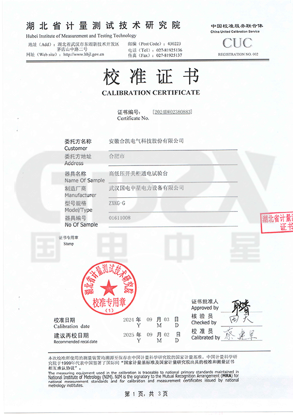 企业产品严格按照国际、国家标准及行业规程生产,通过国家、各省级、市级电力研究所、计量中心及电力权威部门的检测,全面通过ISO9001国际质量管理体系认证、中华人 民共和国制造计量器具许可证、GB/T19001-2008质量管理体系要求、GB/T24001-2004环境管理体系要求、GB/T28001-2011职业健康安全管理体系要求。