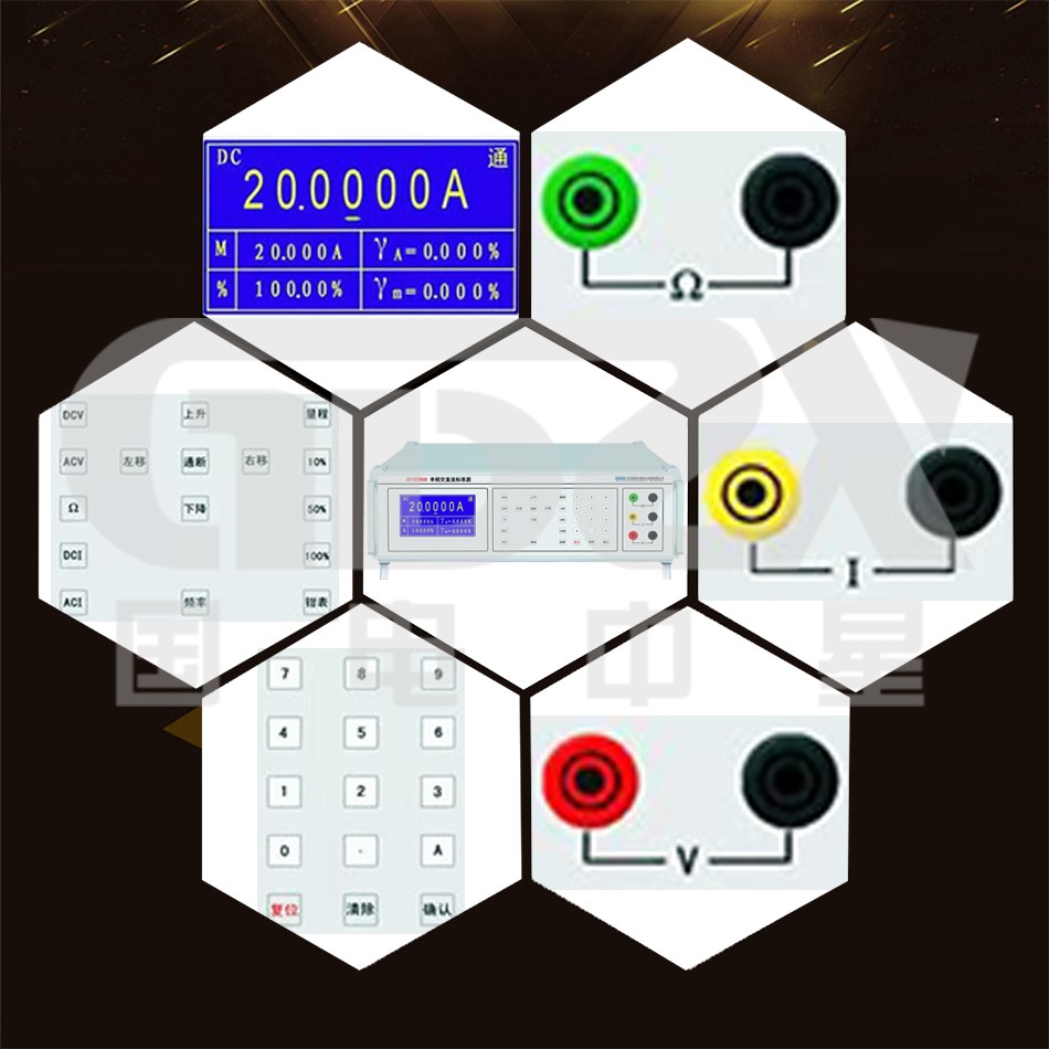 2)采用240×128大屏幕显示器,具有良好人机界面。同时显示输出值、被检表的量程、示值误差和引用误差、交流频率、输出状态等。